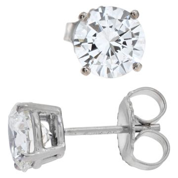 GIA certified Round Brilliand Cut diamond studs 1.04 ct. and 1.03 ct. both G color, VVS2 clarity. 18K white gold 4 prong settings.