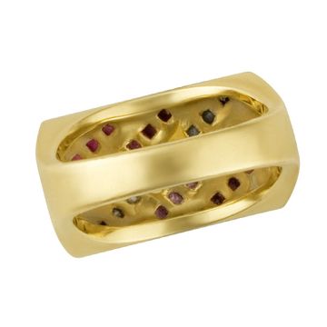 Ring Scuba flag diamond & ruby ring in 14k, app 0.63 cts in diamonds